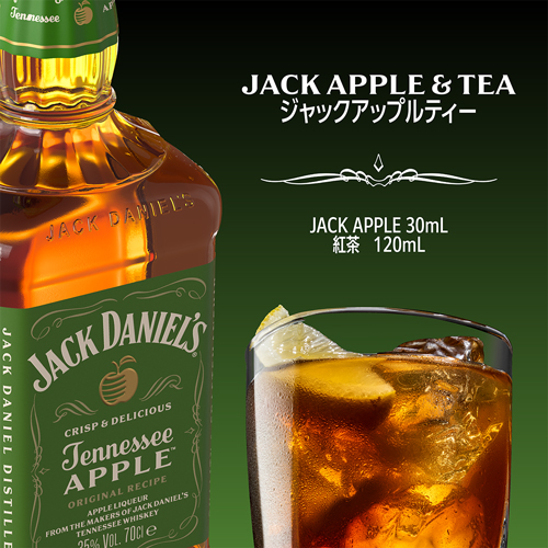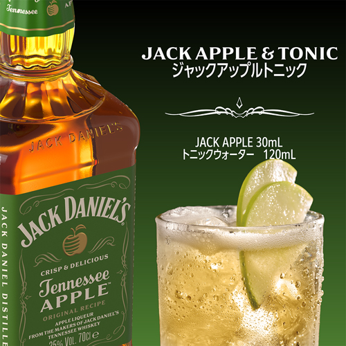 ジャックダニエルOld No.7にみずみずしいアップルのリキュールを加えた爽やかで軽やかなジャックアップル。