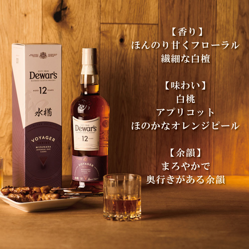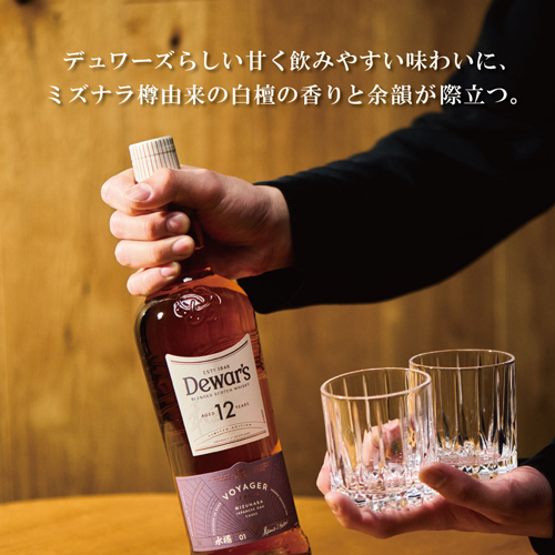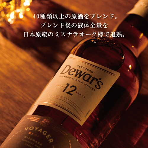 40種類以上の原酒をブレンド。ブレンド後の液体全量を日本原産のミズナラオーク樽で追熟。デュワーズらしい甘く飲みやすい味わいに、ミズナラ樽由来の白檀の香りと余韻が際立つ。